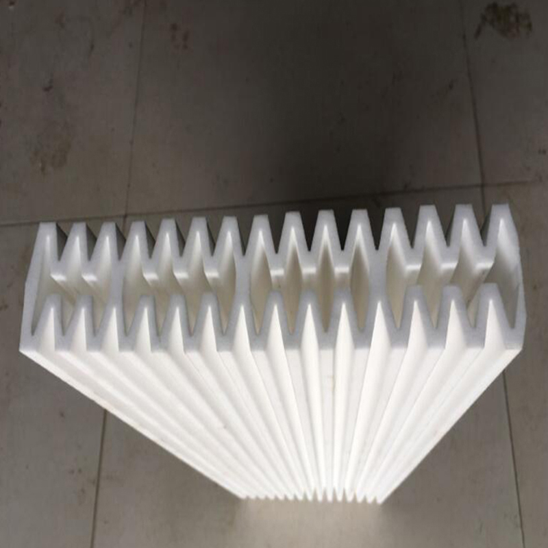 波浪形狀,多孔結構,形成的過濾部件,塑燒板(燒結板)濾芯可以有效的捕集0.1μm以上的粉塵,捕集效率可以達到99.9%以上,排放接近于0,實現了現在的環保要求,低排放。